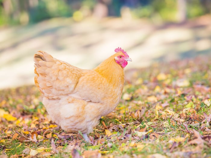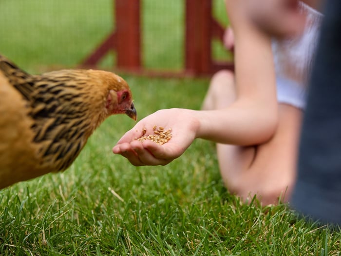 A layer feed with the right calcium levels is essential year-round. In fall, add oyster shell or crushed eggshells to strengthen shells when chickens lay eggs after molt.